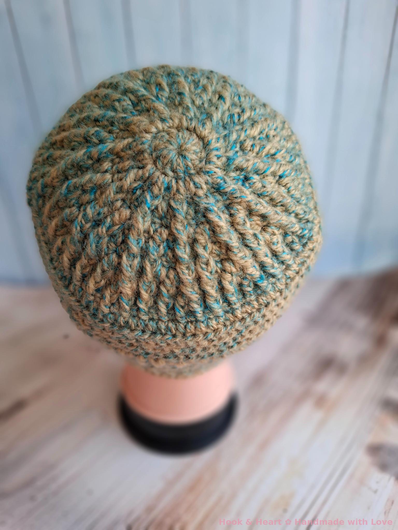 This handmade crochet beanie features a beautiful blend of olive green and teal yarns with a soft, ribbed texture that hugs just right. Stylish enough to elevate your outfit, and warm enough to make winter walks a little cozier.