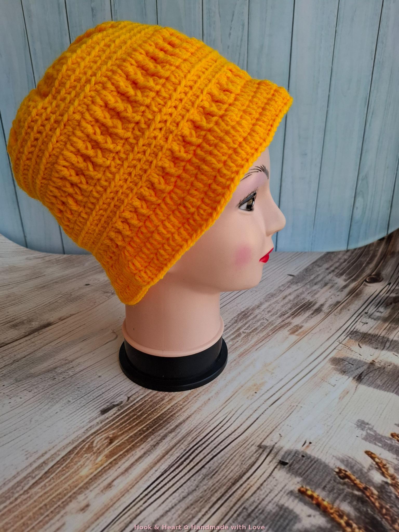 Add a pop of sunshine to your style with our Sunbeam Bucket, a handcrafted crochet bucket hat designed to brighten even the cloudiest days. Made with rich, golden yellow yarn and textured with bold stitches, this hat is both eye-catching and comfy.